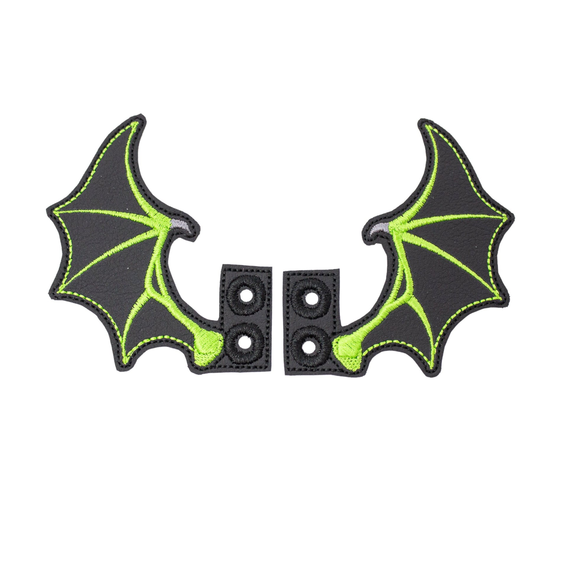 Add some charm and fun to your shoes with our Dragon Wings Shoe Wing Charms. Embroidered onto durable and waterproof Vinyl Faux Leather fabric.