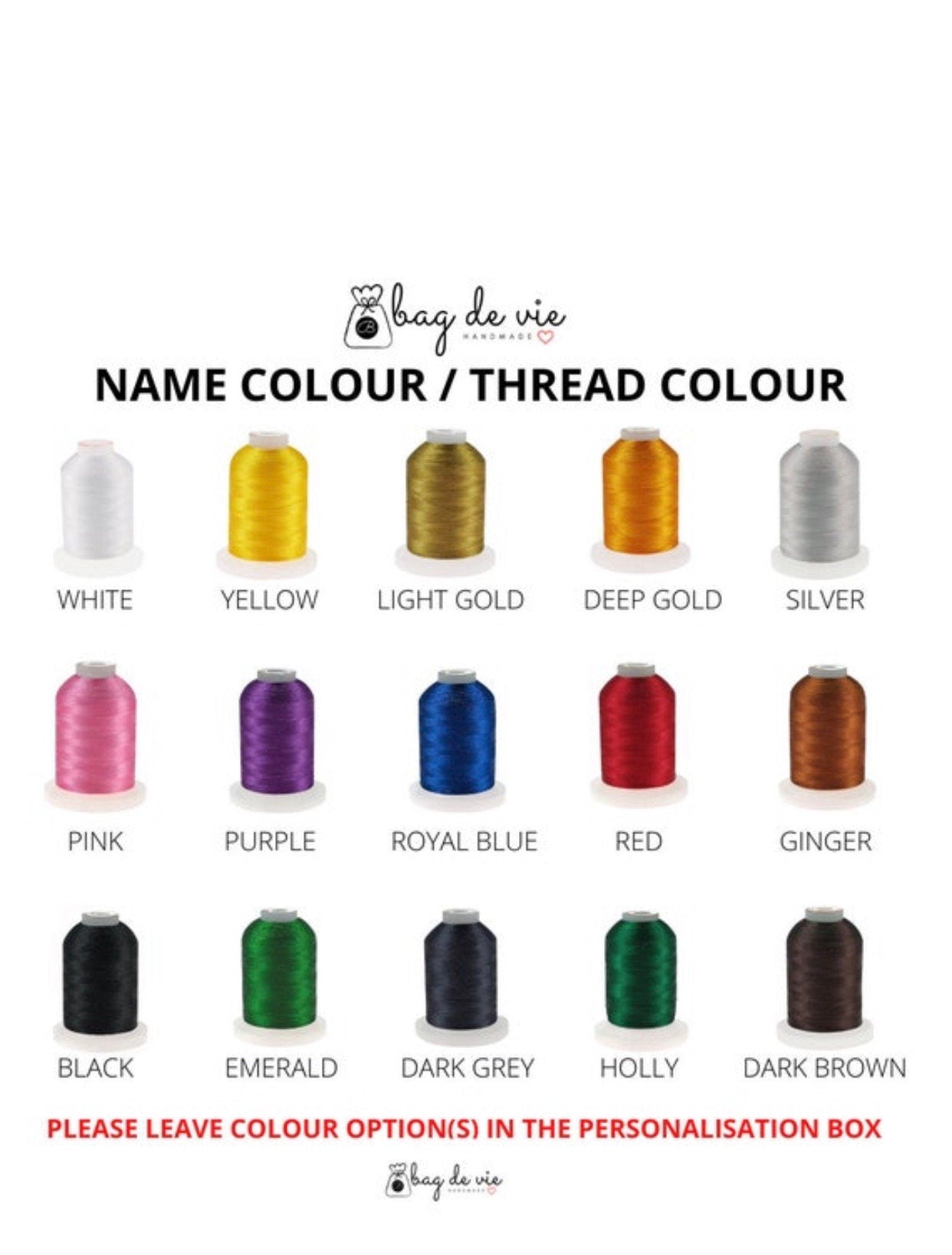 *A second drop down menu will give you the option to choose the thread colour for the name to be embroidered. Please type exactly how you like the name to appear. eg. Maisie or MAISIE